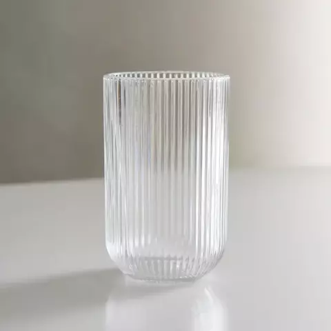 Dale un toque de elegancia y modernidad a tu mesa con los Vasos Altos de la Línea Praga. Su diseño a rayas verticales estriadas aporta personalidad y estilo, ideales para servir agua, jugos o cócteles largos.